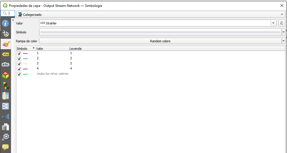 El resultado despues de categorizarlo por Strahler, seria el siguiente: